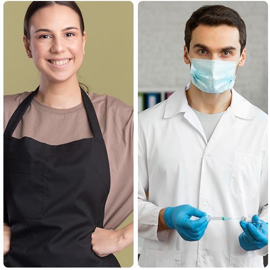 Ideal para la confección de mandiles, batas de laboratorio, camisas para médicos especialistas, cirujanos, residentes, enfermeras, estudiantes, etc. Nuestras telas inteligentes tienen acabado Antibacterial, Antifluido, Solidez al lavado con agua clorada, Anti peeling, para asegurar la protección del personal de salud, reducen el contacto con baterías.
